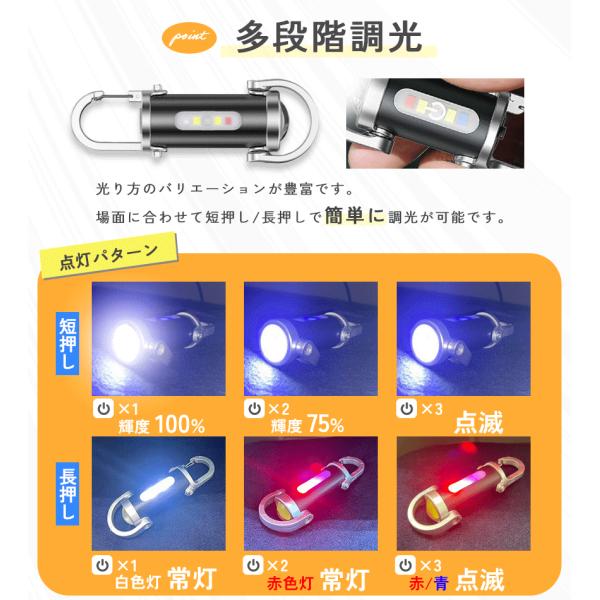 2個セット キーホルダーライト カラビナ付き COB LED ライト ミニライト 携帯ライト 小型 カラビナ キーホルダー 携帯 防災グッズ アウトドア 多機能 非常用 緊急時 コンパクト 超軽量 ポケット ランタン代用 登山 キャンプ 夜間作業 夜道対策 防犯 車 バッグアクセサリー