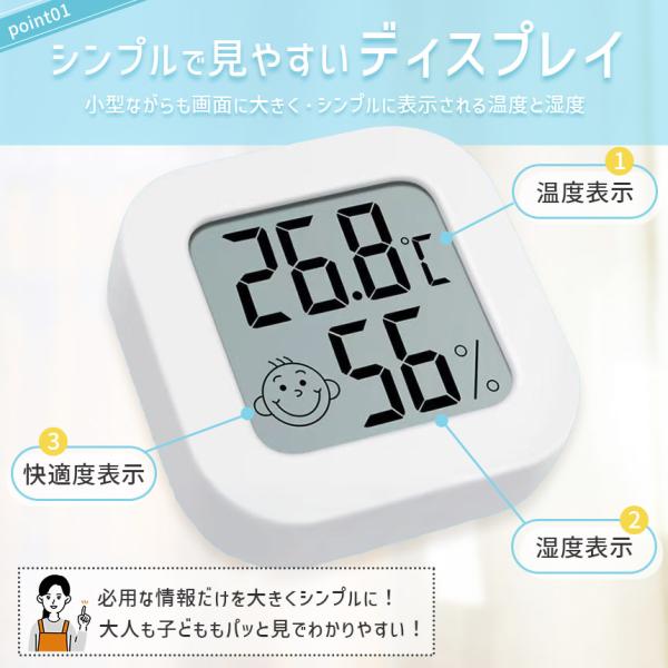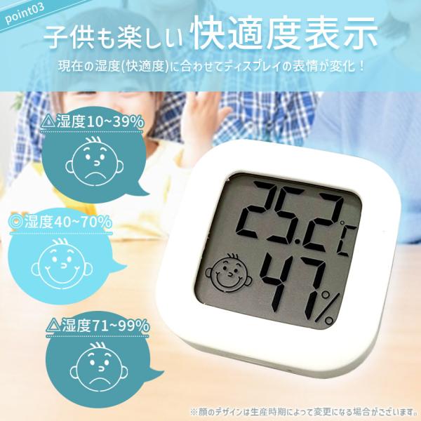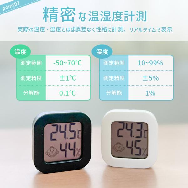 2個セット 温湿度計 小型 高精度 デジタル ミニ コンパクト 温度計 湿度計 室温計 置き型 スタンド 壁掛け 両面テープ付き 電池式 小さい シンプル かわいい おしゃれ 顔マーク 薄型 赤ちゃん 子供 子ども 熱中症対策 乾燥対策 ブラック ホワイト 黒 白 卓上