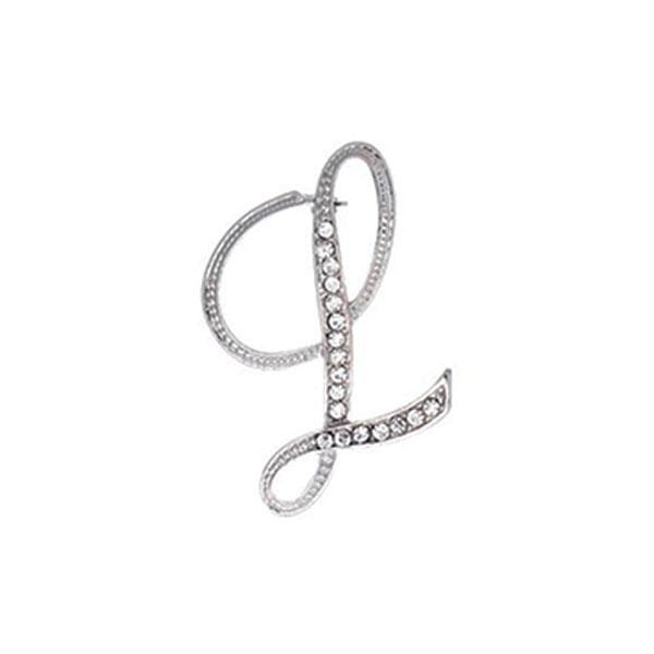 即納 イニシャル 合金 ブローチ ラインストーン ジルコニア アルファベット 筆記体 ピンブローチ アクセサリー キラキラ シルバー ゴージャス 高級感 上品