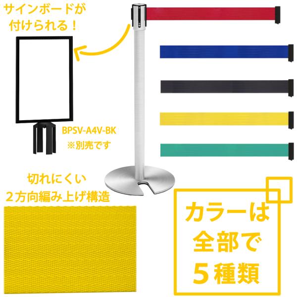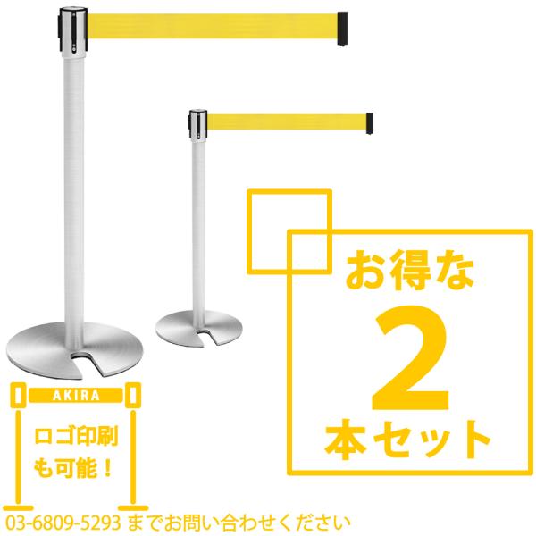 家具のAKIRA ベルトパーテーション 2本セット ステンレス スタッキング 幅35cm 奥行35cm 高さ89cm イエロー 業務用 行列仕切り BPU2-890-YE
