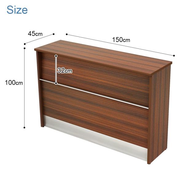 家具のAKIRA ハイカウンター 木製 幅150cm 奥行45cm 高さ100cm 受付カウンター 木製カウンター ブラウン 受付 接客 オフィス HCM-1545-DB