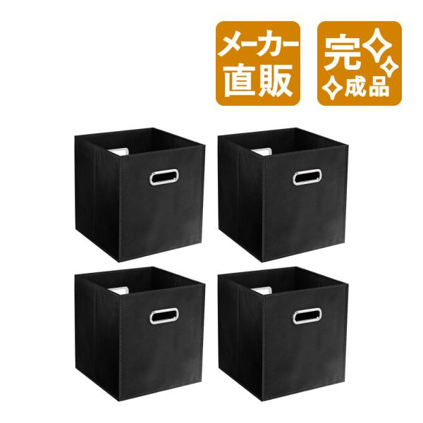 家具のAKIRA 収納ボックス 折りたたみ 4個 ブラック 幅27.5cm 奥行27.5cm 高さ28cm 収納ラック プリンター台 ハイカウンター TL-BOX4-BK
