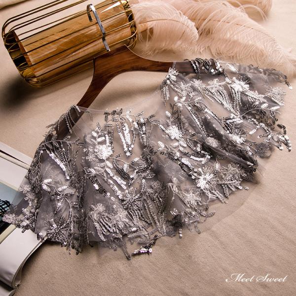ウエディングショール ウェディングケープ ウェディングショール グレー ケープ ブライダル 結婚式 二次会 披露宴 花嫁 肩掛け シルバー スパンコール