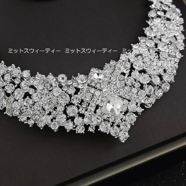 即納 ウェディングネックレス イヤリング シルバー ラインストーン ステージ パーティー 舞台アクセサリー 結婚式 二次会 発表会 花嫁 披露宴 ウエディング小物