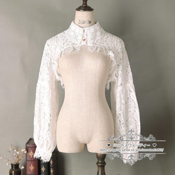 ショートシャツ レースブラウス 長袖 ミニ クロップド丈 二の腕カバー パーティー オフホワイト ブラック ビショップスリーブ ロリータ ロリィタ お洒落