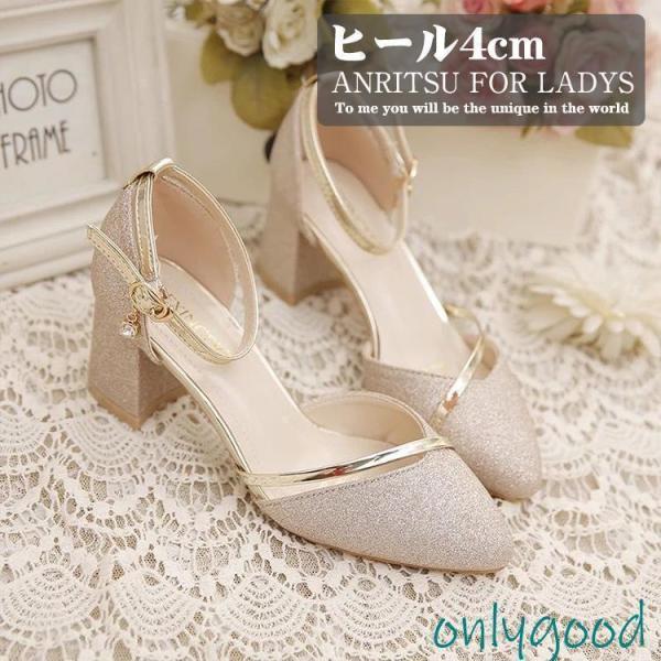 パンプス 結婚式 レディース ブライダルシューズ ストラップ ヒール 5.5cm ウェディング 美脚 ツヤ感 二次会 パーティー 母の日 ギフト 演奏会