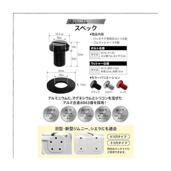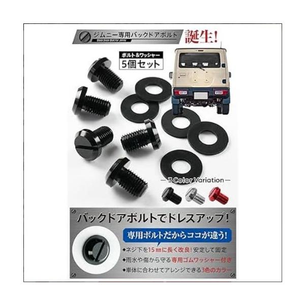 ジムニー対応 ジムニー専用 ボルト 5個セット【ジムニー専用設計バックドアボルト】 錆びを防ぐワッシャー付き 化粧ボルト タイヤレス jb64