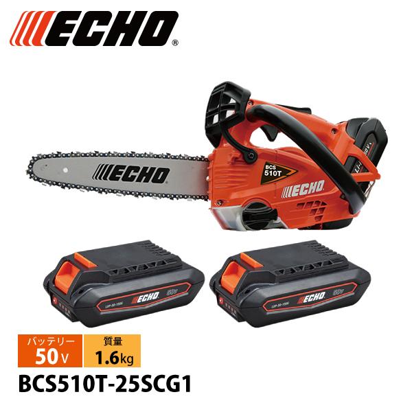 エコー 50Vトップハンドルソー 25cmスプロケット1Pバッテリー2個 ・充電器付き BCS510T-25SCG1 チェンソー 電動 チェーンソー ECHO プラスワンキャンペーン