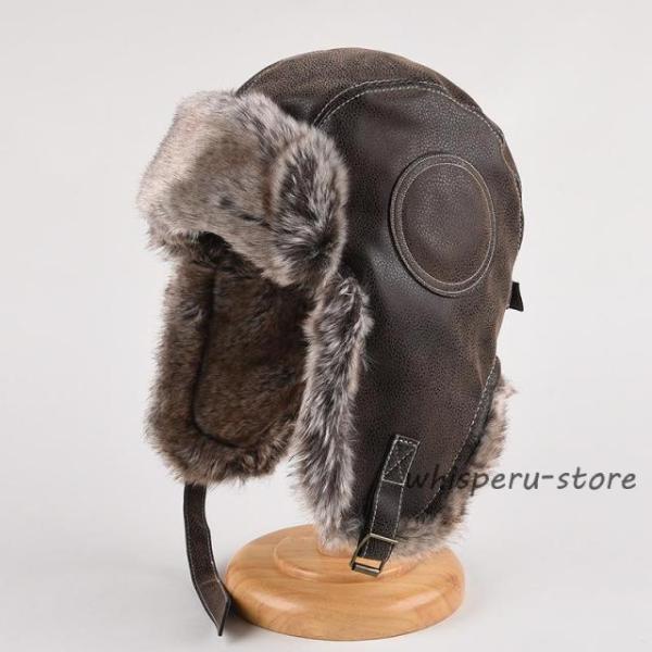 フライトキャップ パイロットキャップ ロシア帽子 あったか おしゃれ メンズ フェイクレザー ハット 耳あて付き 防寒