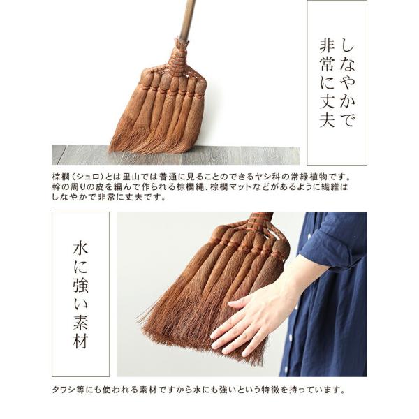 棕櫚箒は数百年の歴史があるといわれる日本の伝統的な箒で、和箒の中でも棕櫚箒は耐久年数が長く、丈夫で長持ちするといわれています。