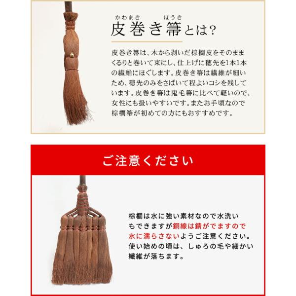 畳み掃に最適。和歌山県 紀州伝統デザイン皮巻き棕櫚箒。