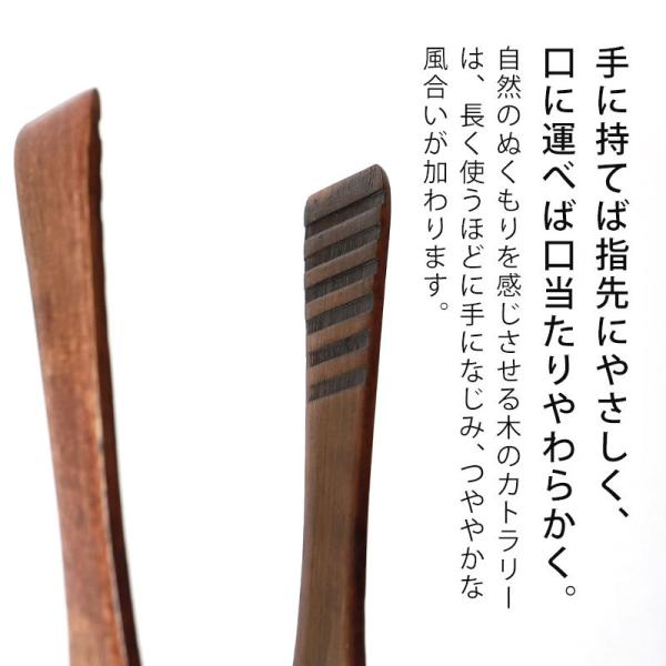 木の色と模様が楽しめるカトラリー。