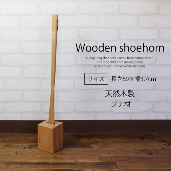 靴べら ロング スタンドセット 天然木製 60cm おしゃれ 玄関 靴ベラ くつべら ブナの木 父の日 プレゼント 実用的