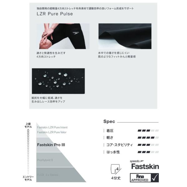 トップの競泳シーンで戦うスイマーのために開発されたモデル。縦横の動きに追随し、様々な泳法に対応する素材「LZRPurePulse(レーザー・ピュア・パルス)」を採用したレディースオープンバックニースキンです。薄さ約0.3mmと薄手で身体によりフィットし、様々な動きをサポート。軽量なので水中での重みも感じにくいのが特徴です。