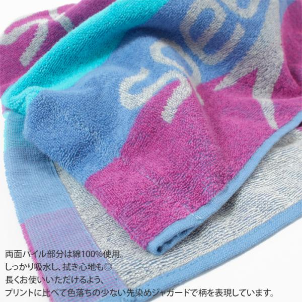 地糸(グランド)に環境配慮型素材、再生PET糸を採用。両面パイル部分は綿100%使用。しっかり吸水し、拭き心地も良いです。長くお使いいただけるよう、プリントに比べて色落ちの少ない先染めジャガードで柄を表現しています。
