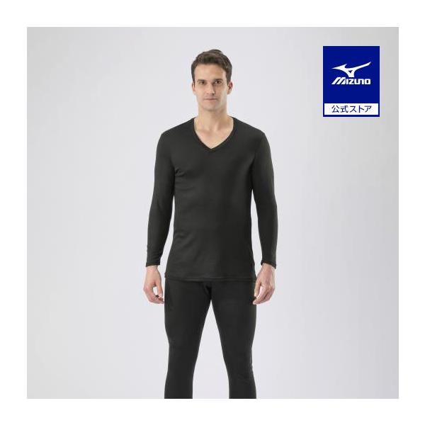 ミズノ公式 発熱素材 ブレスサーモアンダーウエア 中厚ソフト for Daily Vネック9分袖シャツ メンズ ブラック クリアランス