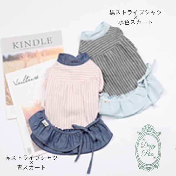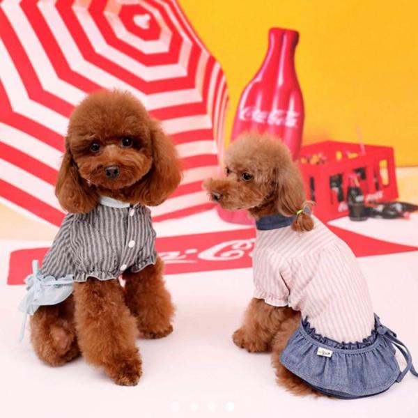 犬 服 セール おしゃれ 着せやすい デニム ペット服 犬の服 安い店 春 夏 DogyPoo スカート ワンピース ストライプ シャツ
