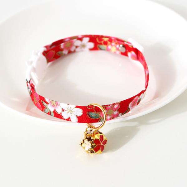 首輪 猫 猫用首輪 鈴 チャーム 鈴付き 和柄 和鈴 花 サイズ調整可 16〜31cm 安全バックル ペット用首輪 首飾り ネックレス