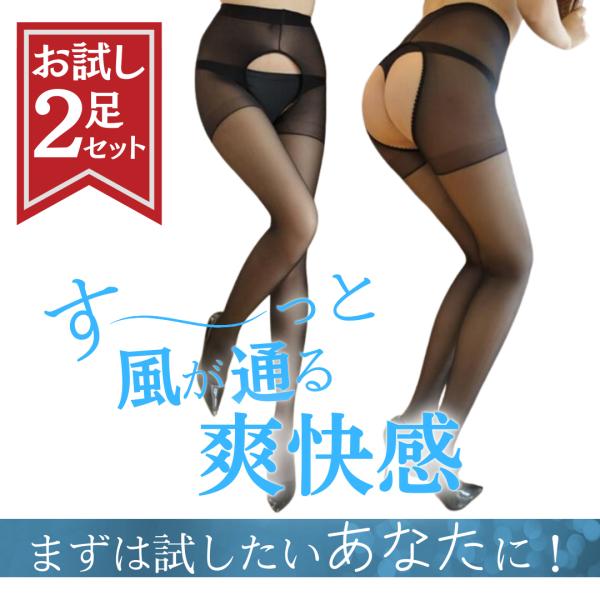 オープンクロッチ ストッキング お試し 2足セット クリスマスギフト パートナー 穴あき パンスト 黒 セクシー 下着 靴下