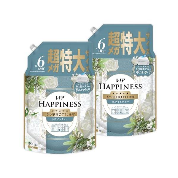 レノア Lenor まとめ買い大容量 ハピネス 夢ふわタッチ 柔軟剤 ホワイトティー 詰め替え 1,900mL×2袋