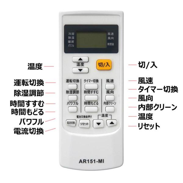 互換品 三菱 エアコン リモコン RH151 RH101 霧ヶ峰 MSZ-225B MSZ-255B MSZ-285B MSZ-365B MSZ-405BS MSZ-565BS MSZ-2216B など MITSUBISHI 代用