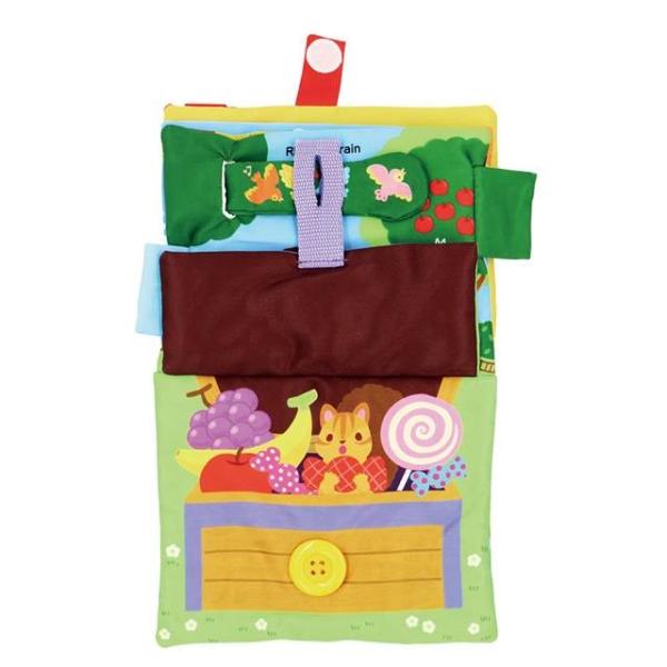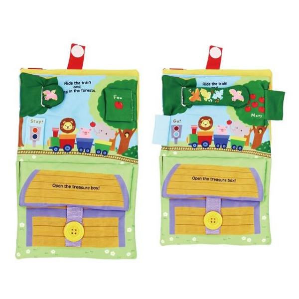 生活習慣の布絵本、ワンダーランド。リボン結び、ジッパーの開閉、ボタンかけの他にも、お子様が大好きな鏡など仕掛けが盛りだくさんのかばん型の布えほん。2歳3歳のお誕生日プレゼントにオススメの知育玩具。クリスマスプレゼントにオススメのおもちゃです。