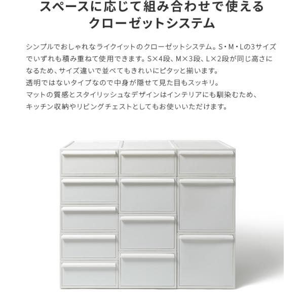 衣装ケース クローゼットシステム L 押入れ収納 衣類収納 引き出し 積み重ね スタッキング 浅型 小さめ スモール 小 幅320 奥行520 高さ318 おしゃれ シンプル 収納ケース 収納ボックス クローゼット チェスト 単品 ライクイット ホワイト グレー