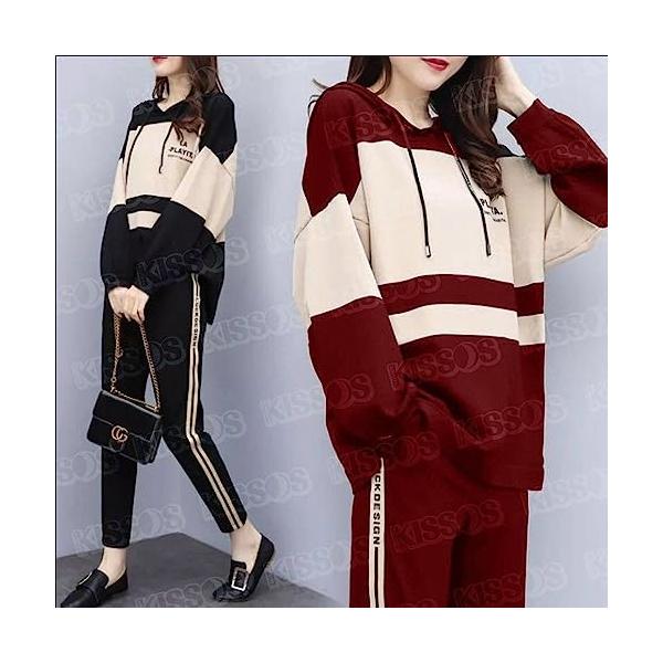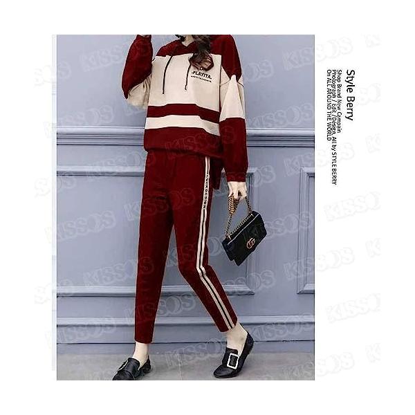キッソス(KISSOS) セットアップ ジャージ レディース パーカー ゆったり 大きめ カジュアル ルームウェア 上下セット (ワインレッド, Lサイズ)