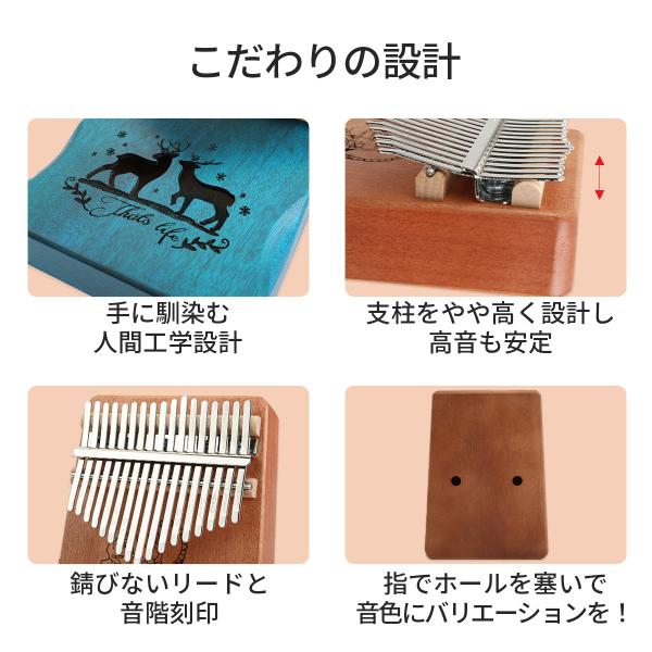カリンバ 親指ピアノ 初心者セット ゆびピアノ 楽器 17キー アフリカ マホガニー 民族 おしゃれ 子供 キャンプ アウトドア