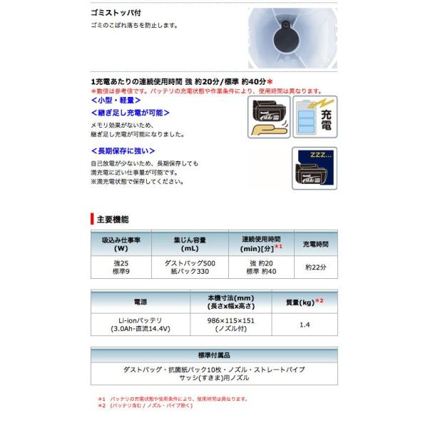 マキタ 充電式クリーナー CL142FDZW 紙パック式 14.4V(本体のみ:バッテリ・充電器別売)