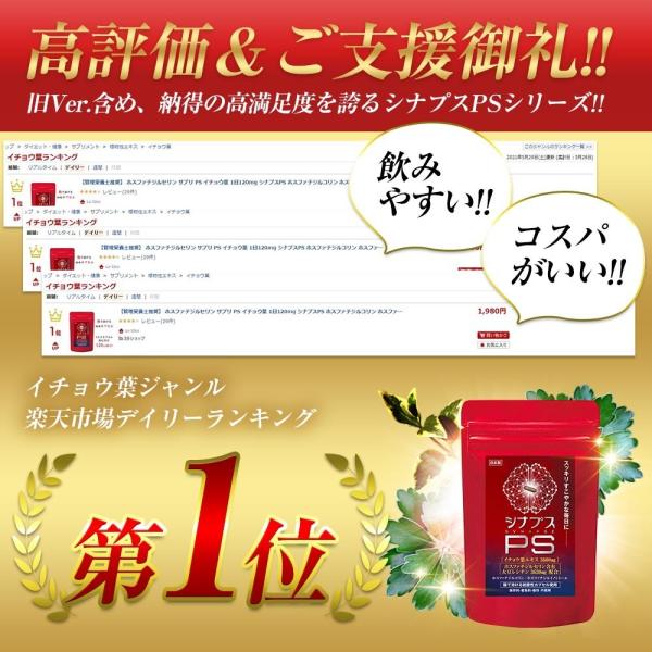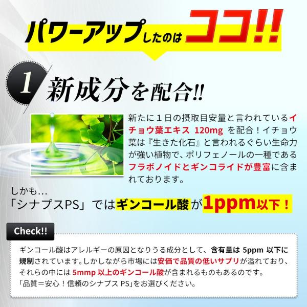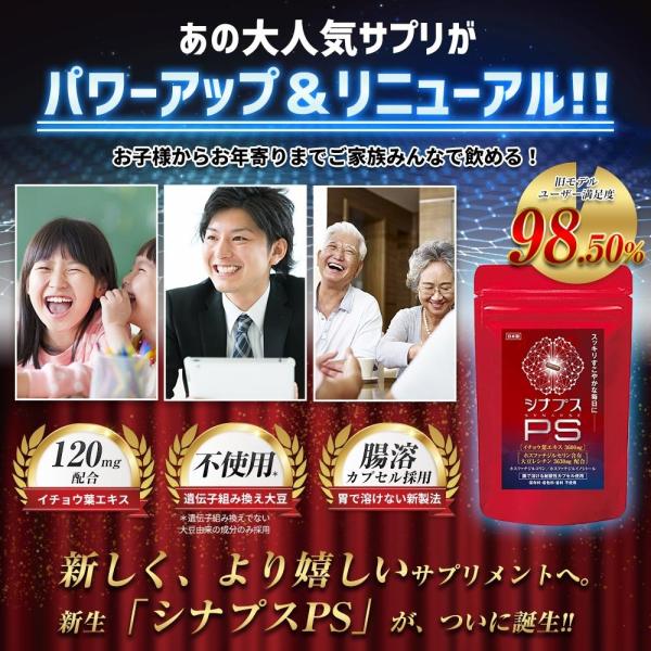 【管理栄養士推奨】 ホスファチジルセリン サプリ PS イチョウ葉 1日120mg シナプスPS ホスファチジルコリン 子供 大人 集中力 記憶力 遺伝子組換え不使用