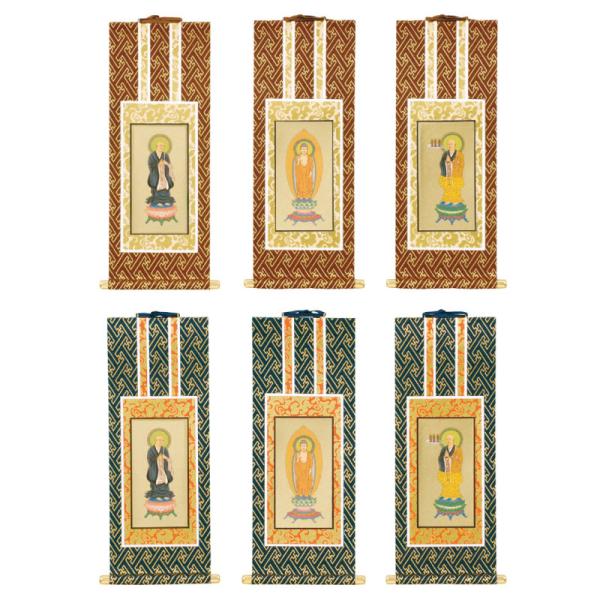 浄土宗用掛軸 法然上人 舟立弥陀 善導大師 茶表装 紺表装