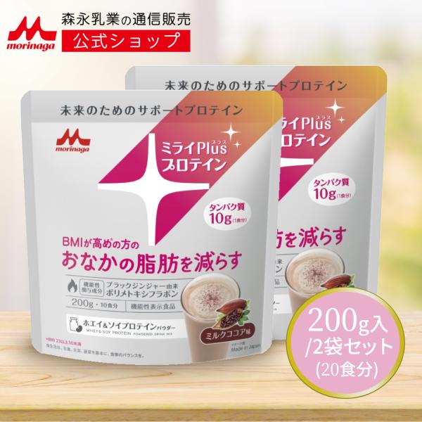 【公式】 森永乳業 機能性表示食品ミライプラスプロテイン ミルクココア味 ホエイ&ソイプロテインパウダー(200g×2袋)
