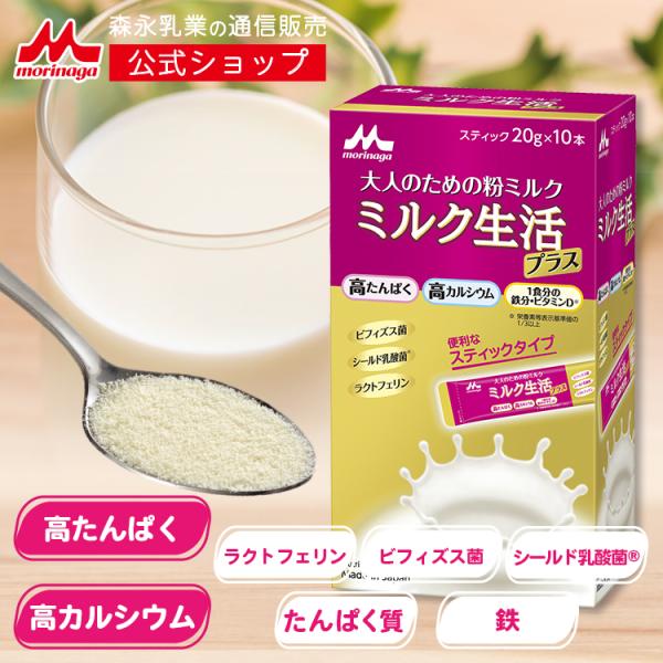 【公式】 森永乳業 ミルク生活プラス スティックタイプ(20g×10本入り) 大人向け粉ミルク売上No.1 たんぱく カルシウム ラクトフェリン ビフィズス菌