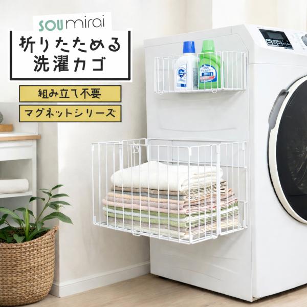 マグネット収納 バスケット 洗濯カゴ 折りたたみ式 壁掛け カゴ 冷蔵庫 洗濯機 お風呂 小物収納 賃貸OK くっつく