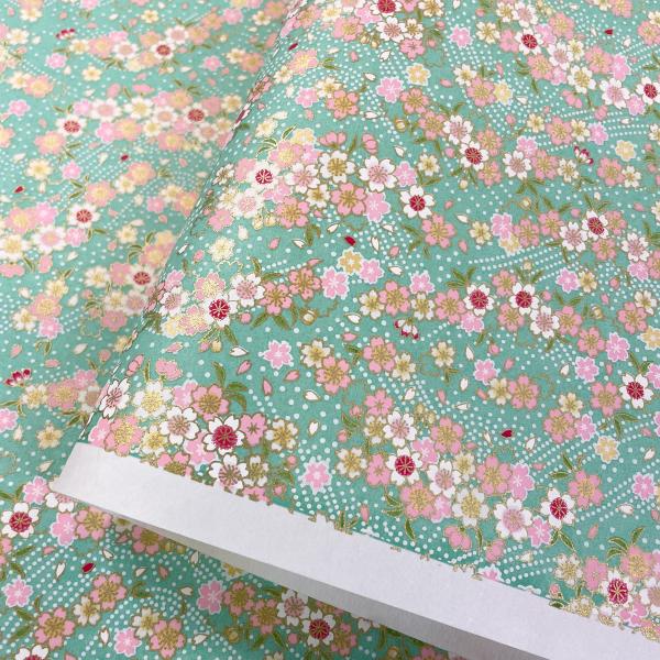 友禅和紙 可憐な桜 優しいドット柄 淡い緑 ミントグリーン かわいい 大判 約63x93cm 千代紙