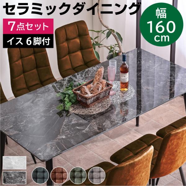 最安値! 幅160セラミックダイニング7点セット(テーブル+チェア6脚付) ダイニングテーブル食卓 大理石調 6人掛け BON ボン-ART