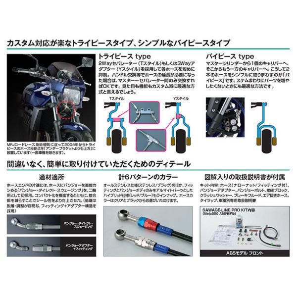 ●キット内容:ブレーキホース、バンジョーアダプター、バンジョーボルト、クラッシュワッシャー、セパレーター(一部キットを除く)、取扱説明書