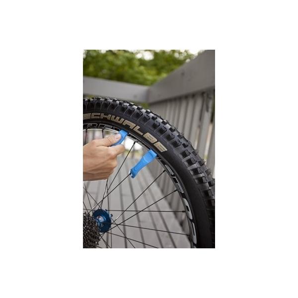 スポークにひっかけやすい形状で使いやすくリムを痛めにくい強化プラスティック製。4本セット。