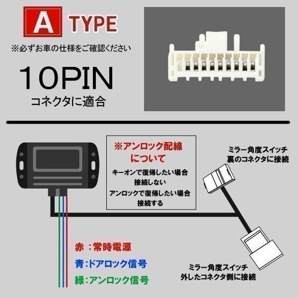 ※車両側ミラー格納スイッチは常に開く(ミラー/OPEN)側の設定で
