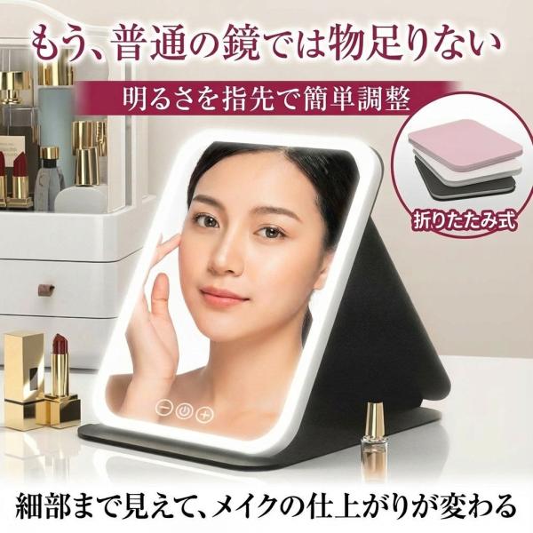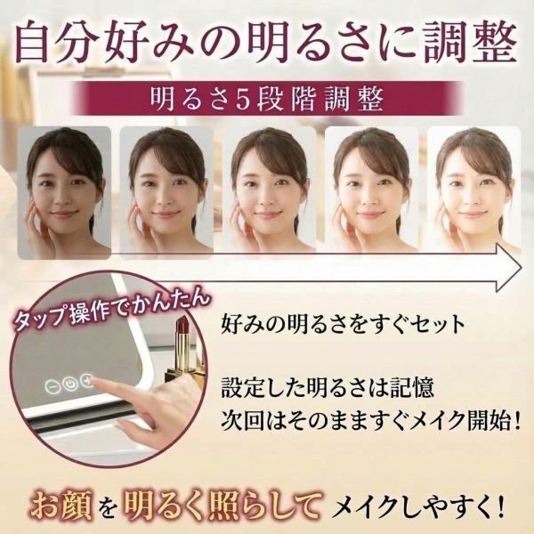 メイクミラー 明るさ調整 3色調光 卓上鏡 スタンドミラー