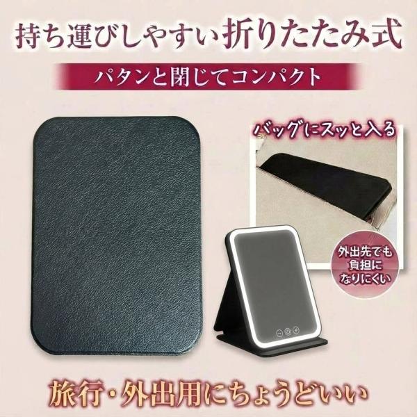女優ミラー 卓上ミラー 化粧鏡 鏡 ライト付き LED 卓上 折りたたみ 充電式 USB充電式 コンパクト