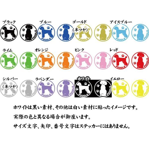 犬 車 かわいい ステッカー プードル (横後1セット) カッティングステッカー 犬種名 丸形 給油口 リアガラス キュート 家族 アピール ワンポイント