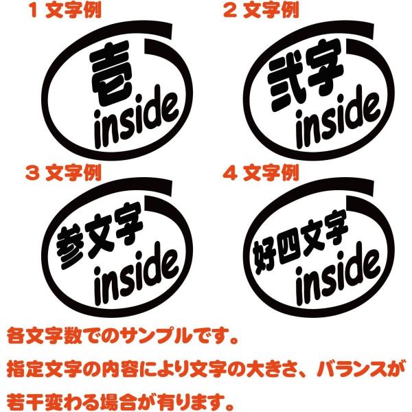 ステッカー 好四文字inside (2枚1セット) カッティングステッカー お好きな4文字で作成(4文字まで) 車 バイク ヘルメット リア サイドガラス