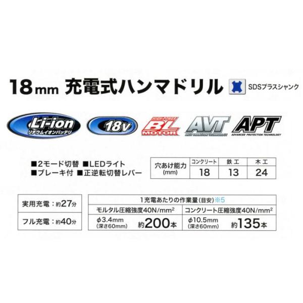 ■集じんシステム搭載、軽量3.2kg!18mmワンハンド充電式ハンマドリル