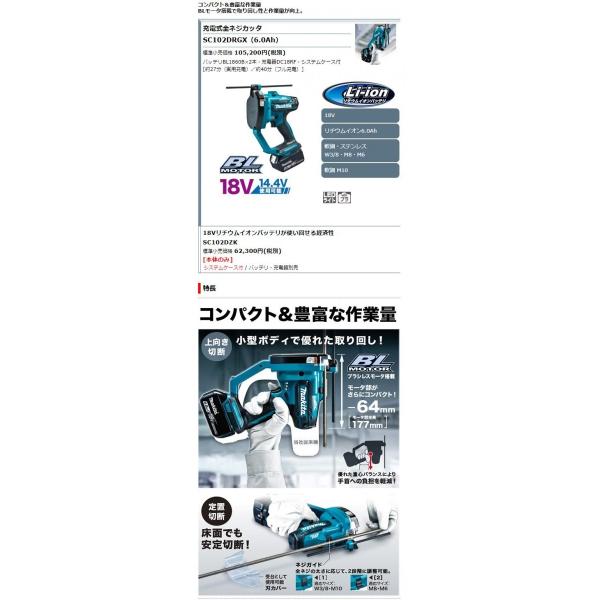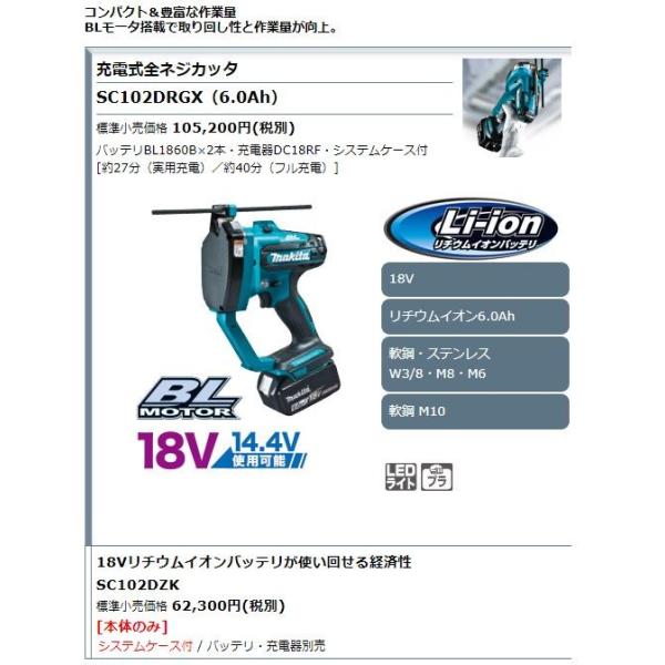 SC102DRGX マキタ 充電式全ネジカッタ (リチウム電池*BL1860 2個、充電器DC18RF付きフルセット)