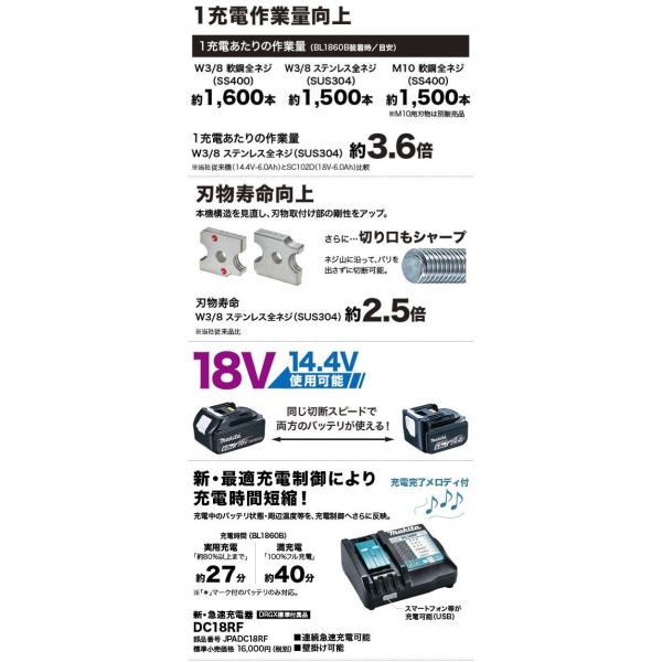 ・標準付属品 :BL1860 2個、充電器DC18RF、W3/8切断用刃、スケール、六角棒スパナ、刃カバー、システムケース付