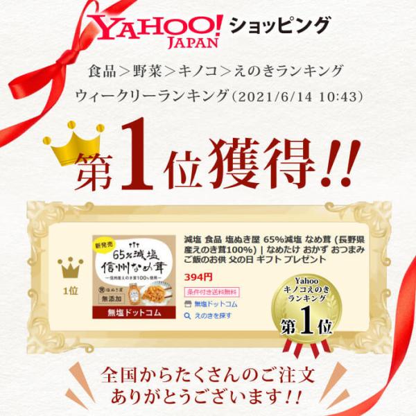減塩 食品 塩ぬき屋 65%減塩 なめ茸 (長野県産えのき茸100%) | なめたけ おかず おつまみ ご飯のお供 母の日 ギフト プレゼント