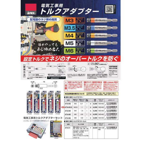 ANEX (アネックス) 電気工事用 トルクアダプター ATA M4用 ATA-M4 配電盤のネジ締めトルク管理に