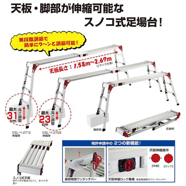 在庫品即出荷 長谷川工業 (ハセガワ) DSL1.0-2712 天板/脚部伸縮足場台 天板長2.7m 高さ1.2m 洗車台 DSL-2712